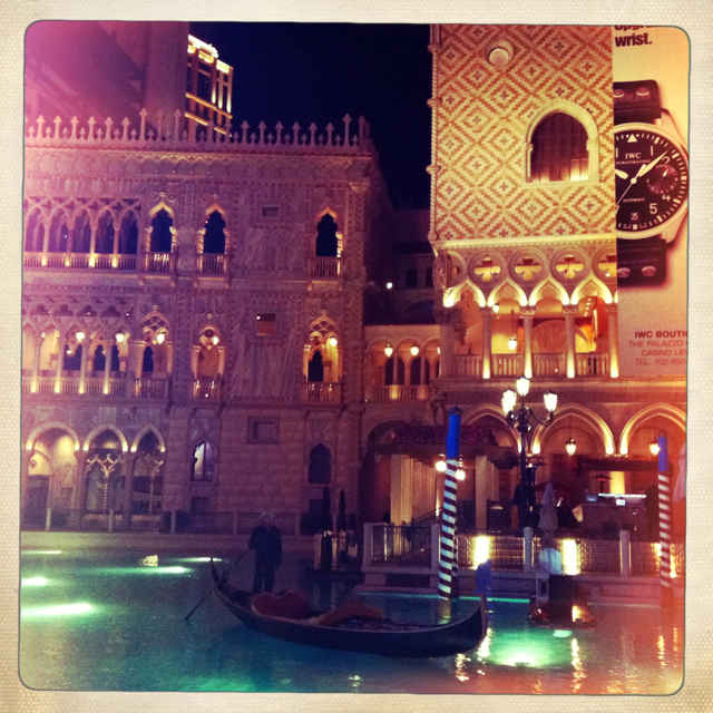 the Strip was emptying as the last of the restless visitors settled down in the wee hours; this gondola was on its way to dock for the night