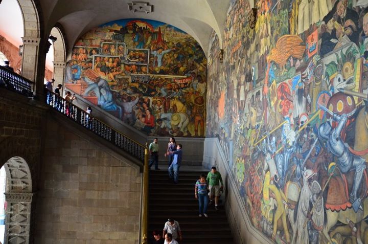 This is a photo of Diego Rivera’s murals inside the National Palace: