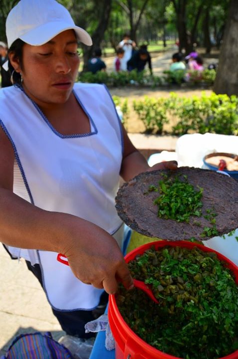 I noticed that eating while traveling is somewhat of an inconvenience. I’m usually never at a right place to eat during meal times. Before I know it, it is 4pm and I haven’t eaten anything since breakfast (breakfast, thank god, is free in the hostel.) I tend to just pick up a quick bite from street vendors. Besides the tacos, here’s one of my favorite, it’s called Tlayuda. It’s a tortilla with beans and I think some cilantro, chili and onions.