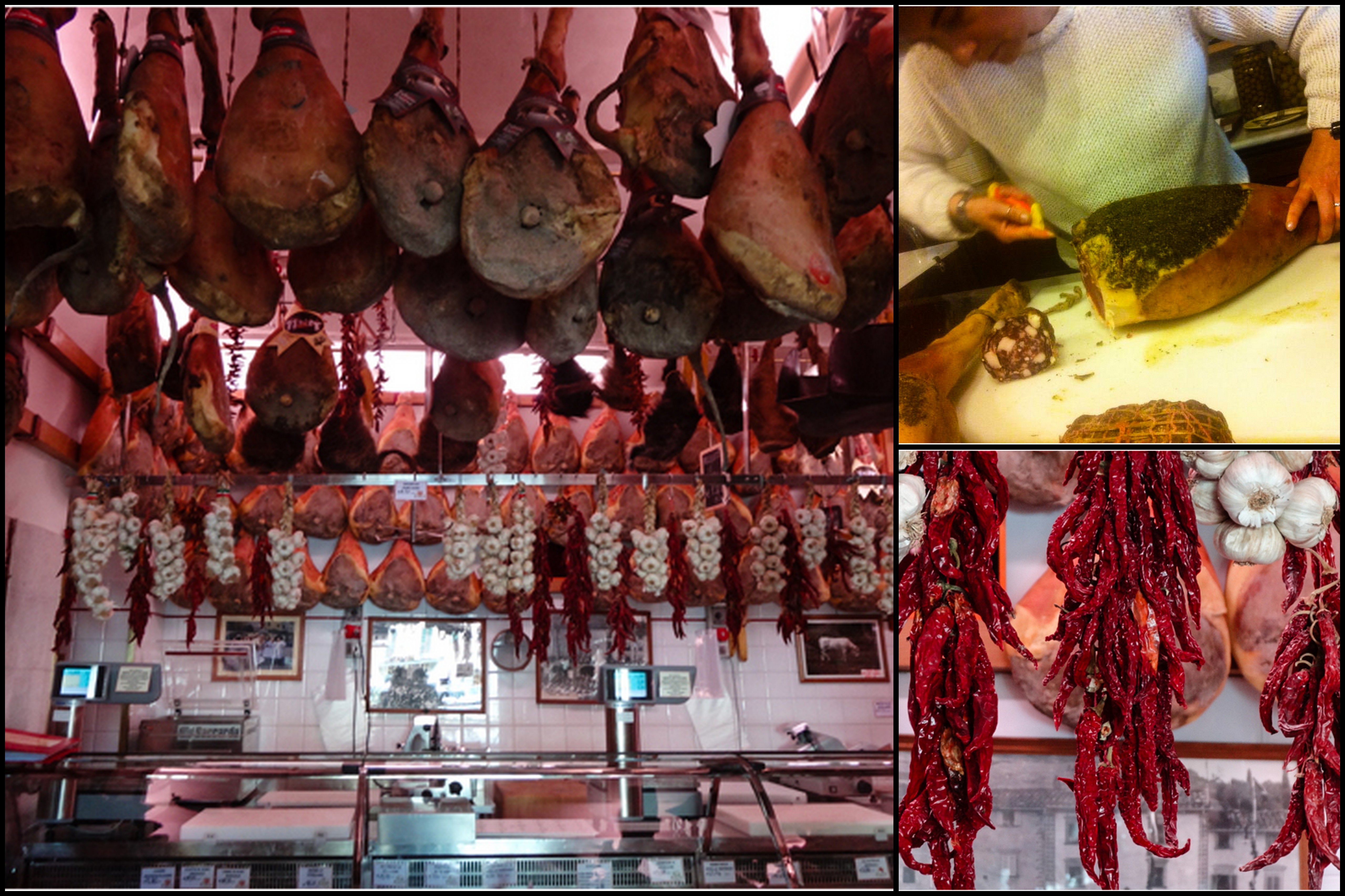 I love prosciutto crudo (dry-cured ham) and I was thrilled to find this huge Salumeria (cured meat shop) nearby.