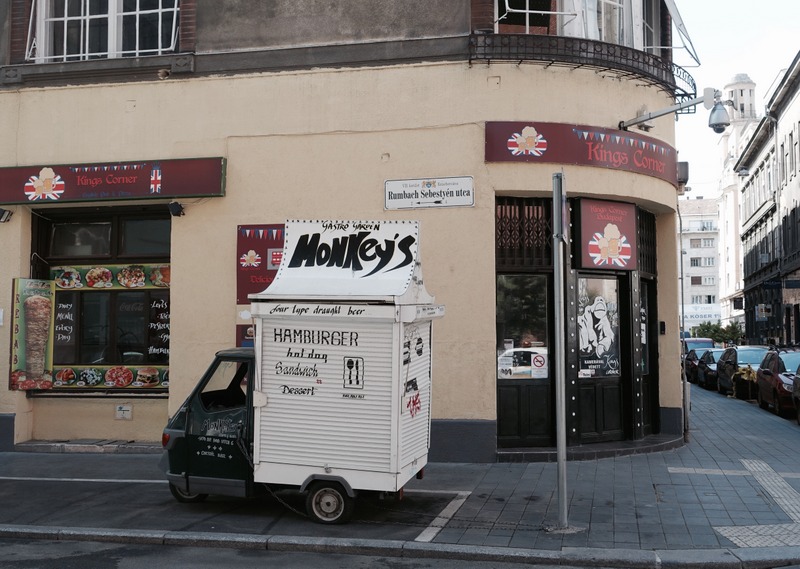 The bustling metropolis greeted me with a golden glow as the sun set on the horizon. I loved my hostel situated within a residential building right in the center of the jewish district, Erzsébetváros. Next door is a kebap stand where I can get a delicious shawarma even late at night. Next to that is a great coffee shop for my caffeine fix, and across is a plaza full of restaurants and bars and even hosts art vendors on weekends. In short, I was in the center of it all. First order of business: I toasted the beginning of my trip with a glass of Pálinka, a traditional brandy made from locally grown fruits. (In spite of the fruit flavor it tasted very, very strong. Kinda like downing a shot of rubbing alcohol.)