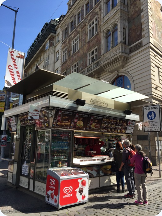 hearty Czech meal!Trdelník. I love this stuff! I first saw these in Budapest and makes a really good snack. It is made from rolled dough that is wrapped around a stick, then grilled and topped with cinnamon, or sugar and walnut mix.a remnant of the original city wall can be seen below the surface, inside the metro linePrague rooftops“I have found myself where I got lost…”