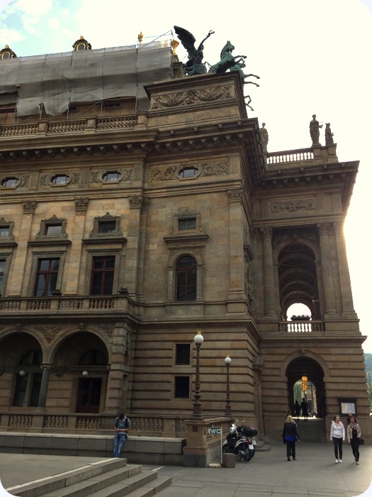 street by National Theatreside view, National Theatre.National Theatre, one of the most important theatre in Prague.“Dorian Gray” playing in the National Theatresculpture outside of the National TheatreDancing House (or Fred and Ginger) by Czech architect Vlado Milunić